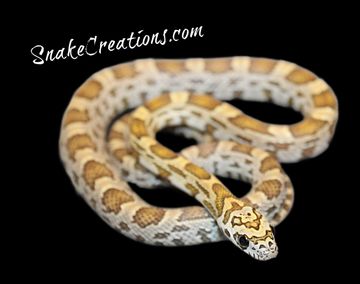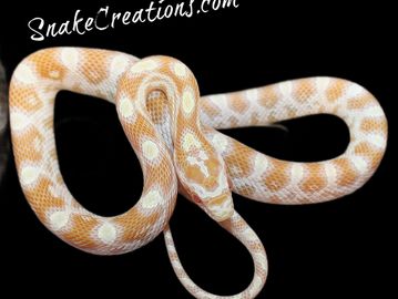 2025 Female Sunkissed het amel or ultra, caramel; 66% het diffused & stripe; 50% het anery, cinder, lava. Consistently eating f/t average sized pinky mice.